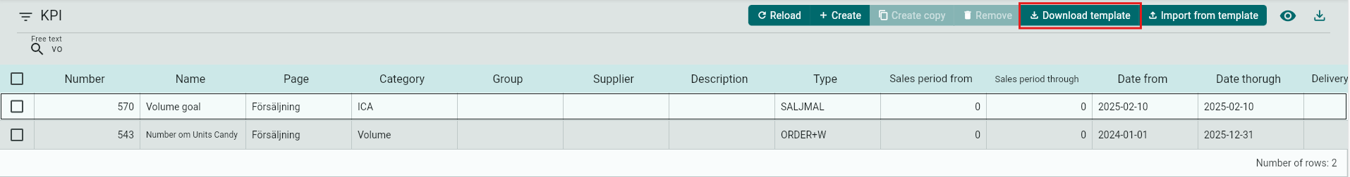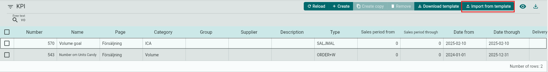 Under Sales Activities - KPIs, you can find all your created meters, and here you can import goals/budgets.