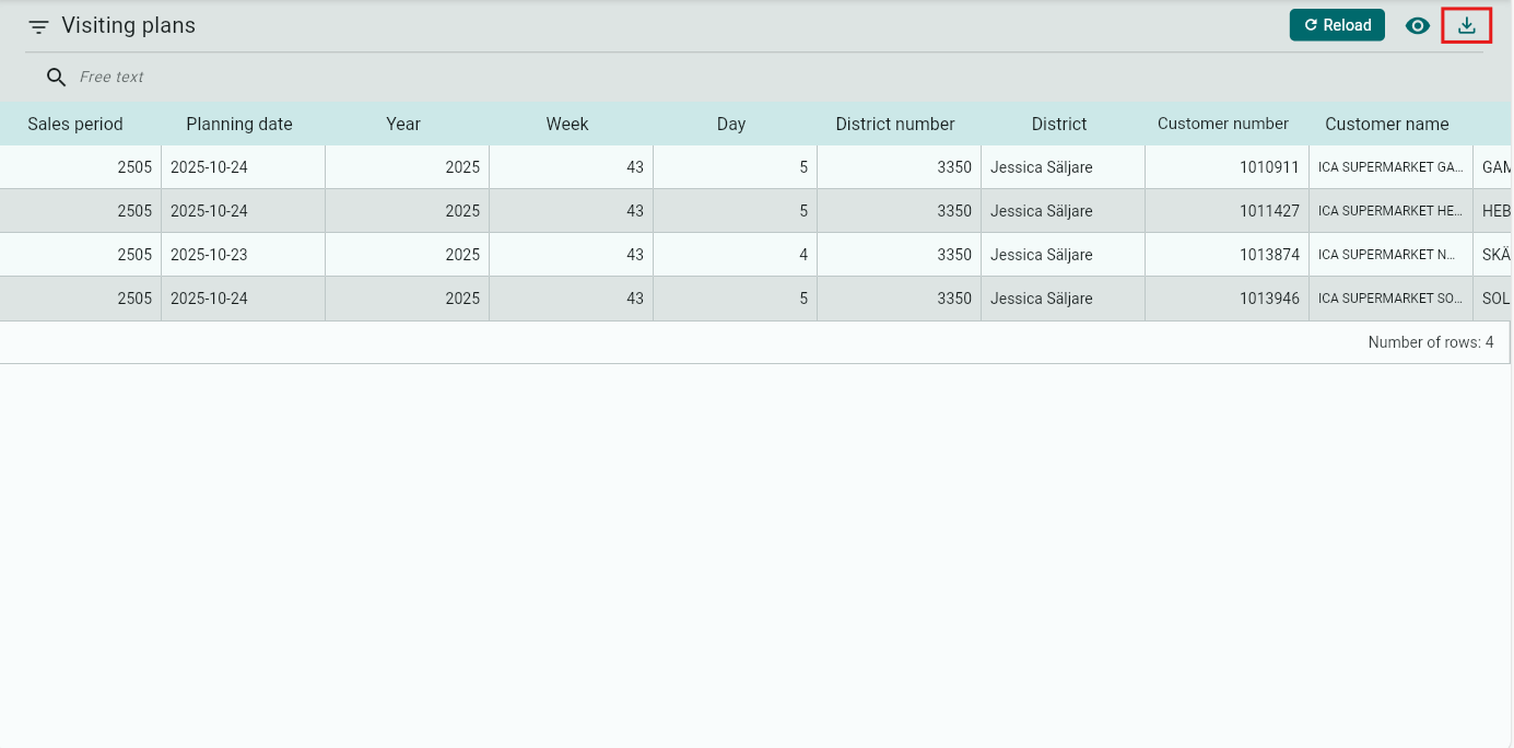 Then select the salesperson or salespeople whose planned visits you want to see.