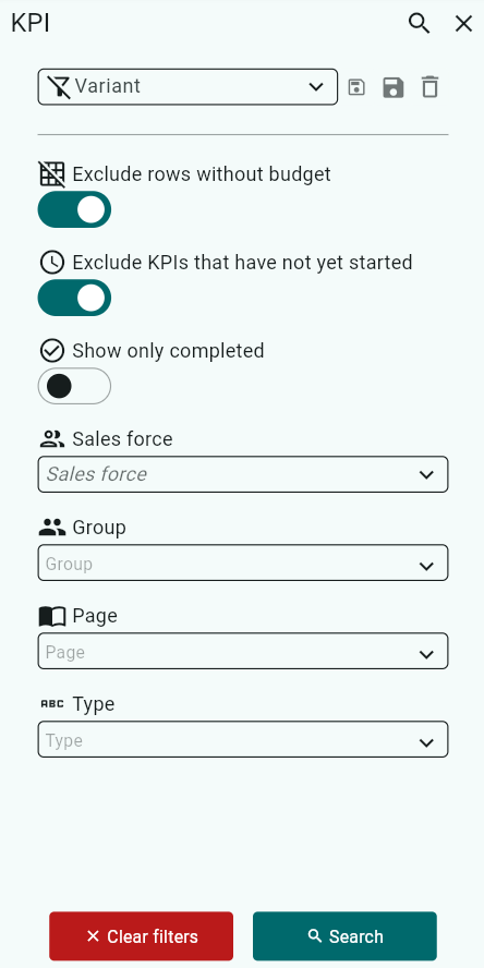 You can filtering in the KPI map by using the filtericon and then yocontrol which rows are displayed using these filters: