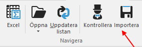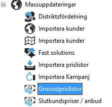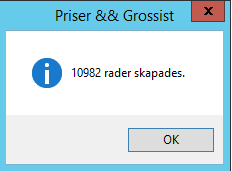 Väljs Nej kommer filen att läsas in, väljs Ja läses filen ej in och Grossistprislistor vyn ligger kvar.