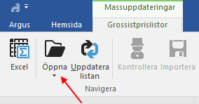 En lista med alla artiklar och grossister som finns i filen kommer att komma fram i Argus, alla data kommer att vara ”röd markerad”.